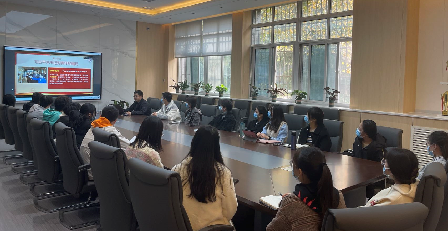 通过侯俊书记的讲授,同学们了解了习近平总书记对青年人的期望,表示以后会努力学习,要在校友的事迹鼓舞下,学习真本领,将自己的青春梦与中国梦相融合,在这百年未有之大变局中为中华民族的伟大复兴贡献自己的一份力量。