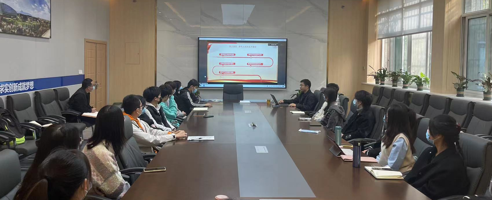 最后,侯俊讲到青年人成长成才的途径。一是坚定理想信念,有了远大理想和人生信念,才能引导自身不断地攀登人生高峰;二是善于学习,梦想从学习开始。青年时期是学习知识的黄金时期,应该把学习作为首要的任务,作为一种责任,一种使命,一种习惯;三是培养好奇心和想象力,有探疑精神,更要有动手解决问题的能力;四是勤奋刻苦,业精于勤,践行“少年辛苦终身事,莫向光阴惰寸功”的道理。新时代的青年,肩负着中华民族伟大复兴的重任,成才的愿望更加强烈,因此广大青年要坚定不移听党话、跟党走,怀抱梦想又脚踏实地,敢想敢为又善作善为,立志做有理想、敢担当、能吃苦、肯奋斗的新时代好青年,让青春在全面建设社会主义现代化国家的火热实践中绽放绚丽之花。