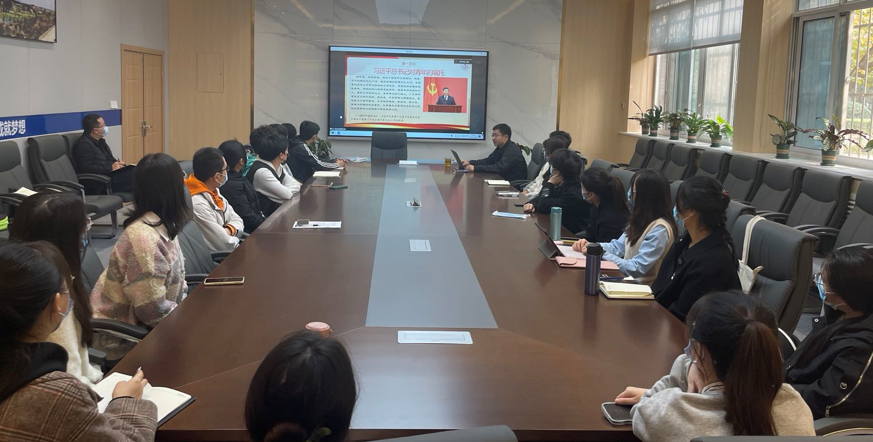 党委书记侯俊为学院2022年秋季所有党员发展对象讲授主题为“不负重托 踔厉奋进 争做新时代可堪大用能担重任的栋梁之才”的党课。线上线下共有65名党员发展对象参与了课程的学习。