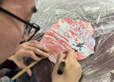 雕刻体验活动结束后,大家开始了漆扇体验活动。大家按照自己的构思将不同颜色的漂漆混合在水中,有的以红色和黄色为主题色,构筑国泰民安、欣欣向荣的盛世画卷,表达对祖国繁荣、人民幸福的美好祝愿;有的则以蓝色为扇面主题色,紧扣我校“三航”特色,寄予科技水平不断进步、校园事业蓬勃发展的寓意。漆扇制作完成后,大家在扇面上写上祝福语并盖上亲手雕刻的印章,为本次活动圆满收官。